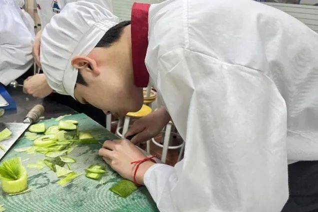 课中,潘老师以“行动导向、任务驱动”的理念,最大程度地发挥学生学习主动性和积极性,体现以学生为主体,教师为主导的思想;为促成学生完成荷叶冷拼任务,采用飞花令游戏导入,增强学生学习兴趣,采用酒店真实任务,将“工作与学习合二为一”,通过任务驱动、头脑风暴、角色扮演、分工合作、小组竞赛等多种方法展开学习、探究。教学过程中密切关注安全、成本,切实增强学生的岗位意识和解决实际问题的职业能力,并通过课程思政的有机融入,提高学生的综合素养。