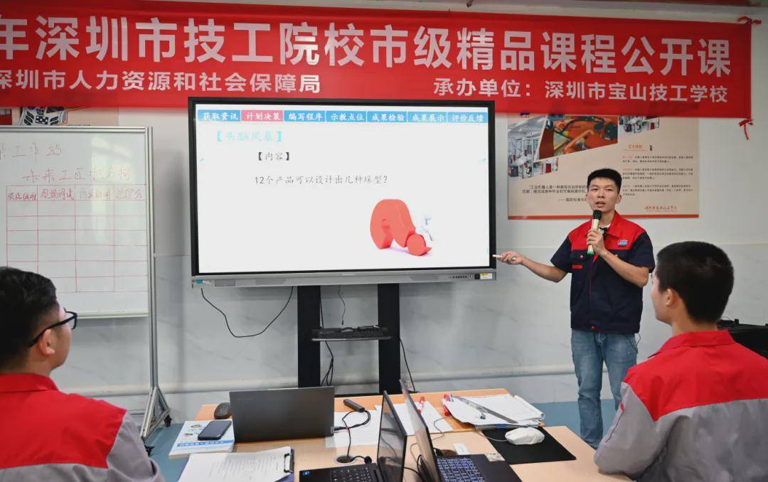 为深入贯彻总书记关于技能人才工作的重要指示精神,全面推进深圳市技工院校精品课程建设工作,深圳市人力资源和社会保障局主办了2024年深圳市技工院校市级精品课程公开课及观摩活动。5月17日下午,全市精品课程公开课第五场在深圳市宝山技工学校工业中心举行。