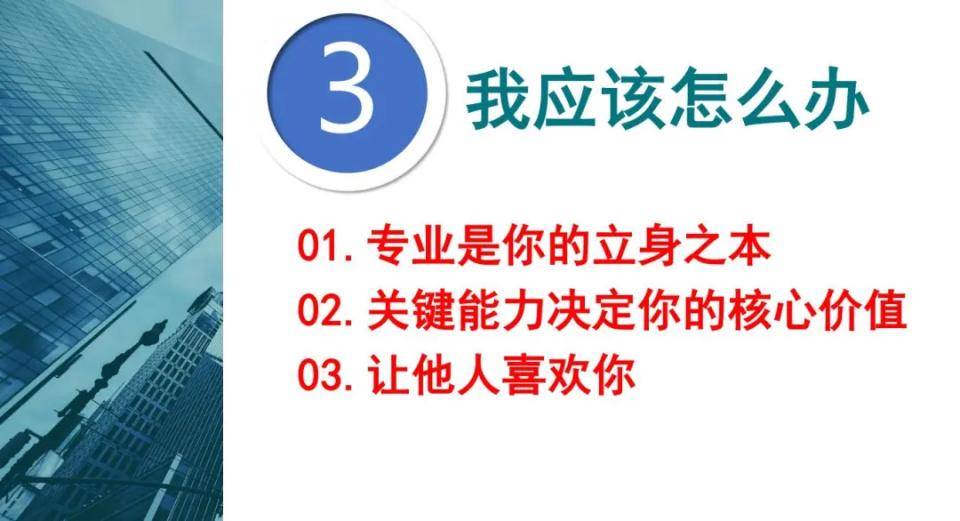 在明确了定位和定向之后,邓校长提出了“定心:我应该怎么办”的问题。他强调,专业是学生们的立身之本,无论是选择技术路线还是管理路线,专业能力都是发展的基石。他给出了保持自律、拆解目标、学会学习等建议,帮助学生们提升专业能力。同时,他也强调了关键能力的培养,包括学习、写作、人际交往、解决问题等多种能力,特别是解决问题能力的重要性。他建议学生们通过多读书、多写作、多反思等方式来提升自己的关键能力。