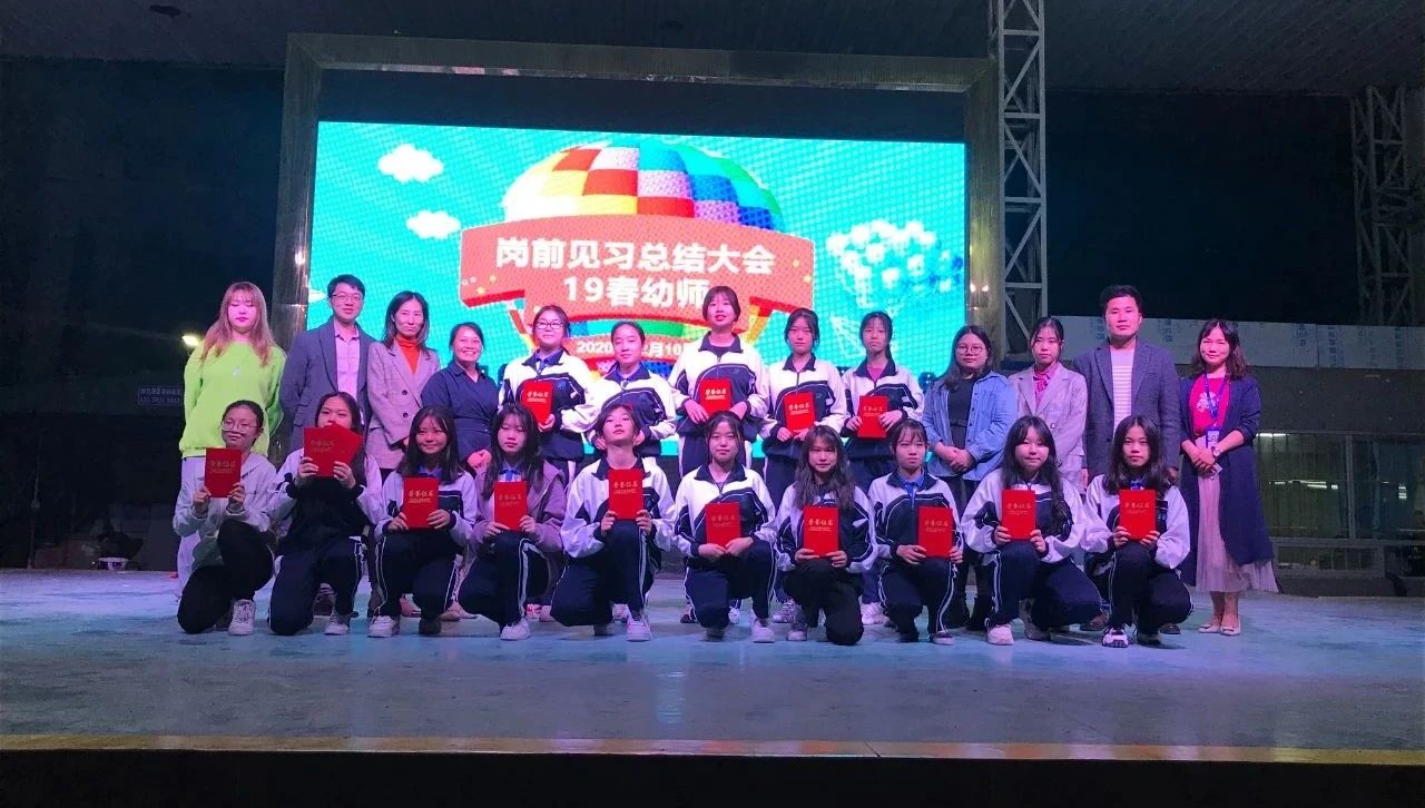 我校针对19春幼师见习召开了一个大型的见习总结大会。