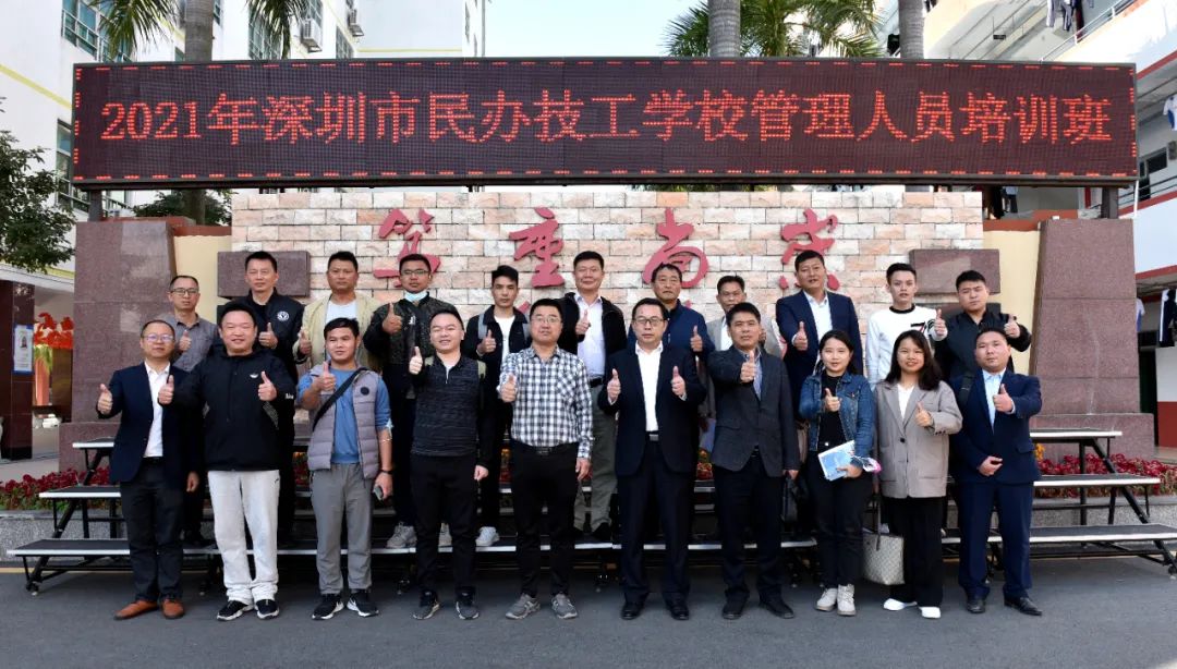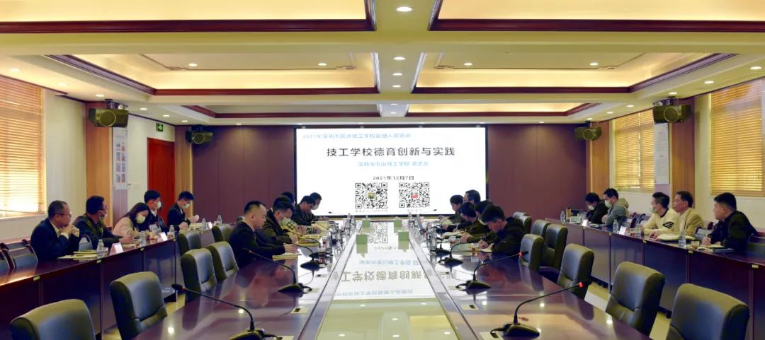 为进一步提升我市民办技工学校人才培养质量,提高学校管理人员的综合管理能力,深圳市人力资源和社会保障局定于2021年12月份举办两期深圳市民办技工学校管理人员培训班。12月7日上午9时,第一期培训班的首个培训活动在我校开展,来自我市9所民办技校负责学生工作的管理人员参加了本次培训。我校邓志久校长以“技工学校德育创新与实践”为题,从理论和实践两方面向学员们介绍中职德育的现状,分享了宝山技校的管理经验。
