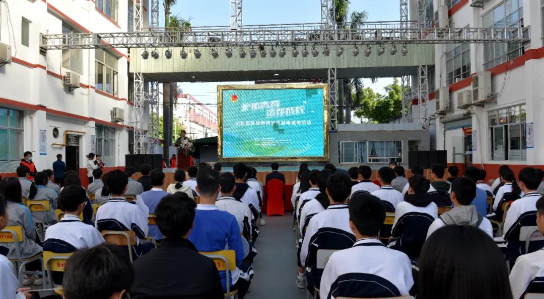 共青团深圳市委员会发展和权益部部长姜歌,坪山区司法局党组成员、副局长钟远平、坪山区禁毒委副主任、市公安局坪山分局副局长王玉芝、坪山区群团工作部副部长、团区委书记罗斌以及深圳市宝山技工学校副校长黄德祥出席了本次宣传活动,600名学生代表参加本次活动。