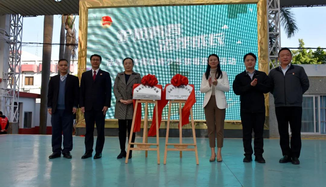 坪山区人民检察院胡京怀副检察长,区司法局钟远平副局长,团区委罗斌书记,宝山技工学校黄德祥副校长上台为坪山区未成年人法治教育中心进行揭牌。