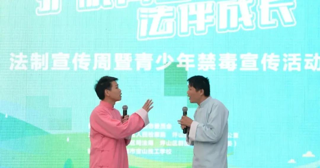 ▲禁毒宣传相声《粉丝》表演赢得了同学们的阵阵掌声