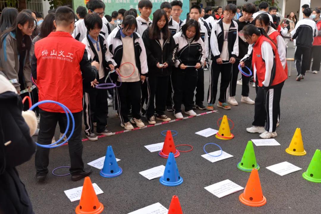 互动区域,设置有学生签名墙、禁毒知识宣传牌、毒品样品展示区以及各类与禁毒、法治相关的趣味游戏项目,同学们积极参加游戏,尽显自己的禁毒知识。通过将毒品预防教育知识融入简单、有趣的游戏项目,辅之以小礼品为奖励,寓教于乐,寓学于趣,让每一位参加活动的同学都能在快乐游戏的过程中,轻松接受禁毒知识的教育和熏陶,树立起禁毒的使命感。
