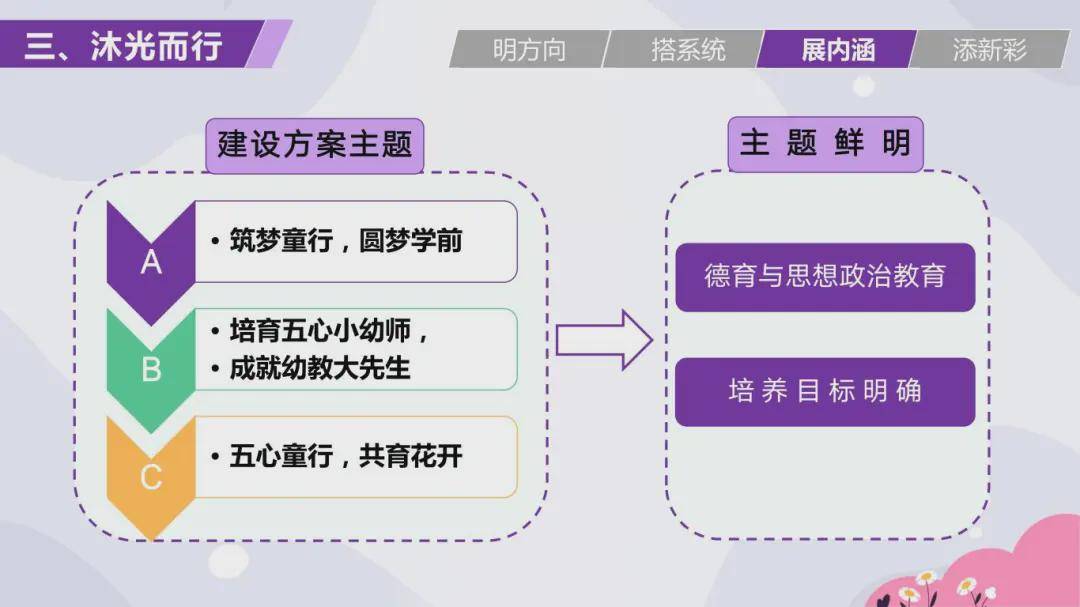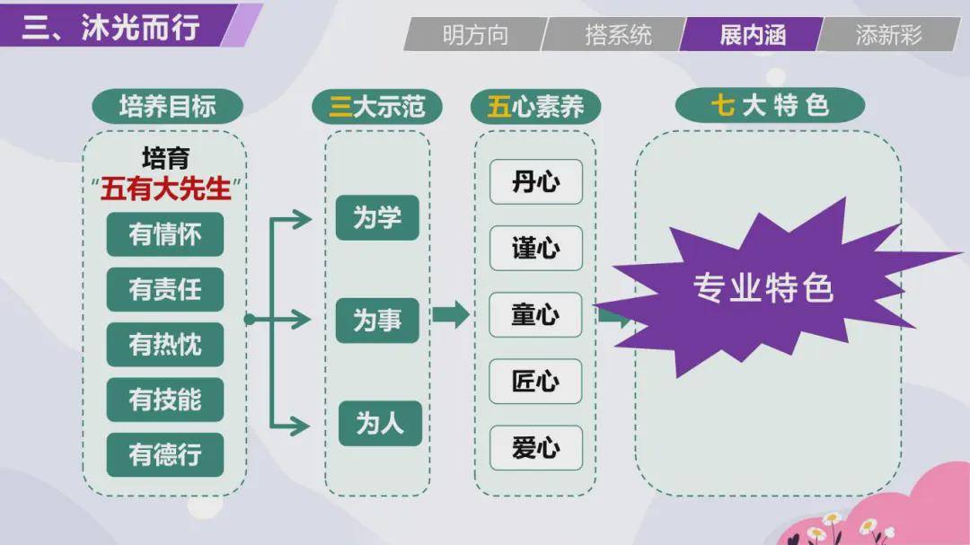 在竞赛方面,汤晶晶老师提到,竞赛的过程更是一个以赛促学以赛促成长的过程,参赛的这一年是我班主任专业化成长最快的一年。她说到,班主任在学生入学的时候一定要做好班情分析,并根据班情、校情、人才培养方案等制定好班级建设方案,做到有目标有计划地建设班风正,学风浓的良好班集体。会上,她总结了班级建设方案编写的四个步骤:“熟悉文件明方向、厘清脉络搭系统、立意鲜明展内涵、合成润色添新彩”,并用自己的班级建设方案为例进行了深入的分析。