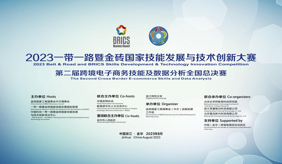 本次大赛由金砖国家工商理事会中方理事会、一带一路暨金砖国家技能发展国际联盟、中国科协一带一路暨金砖国家技能发展与技术创新培训中心、中国发明协会、教育部中外人文交流中心、金华市人民政府、浙江师范大学联合主办,金砖国家工商理事会(中方)技能发展工作组承办,北京企学研教育科技研究院、浙江思睿智训科技有限公司、北京嘉克兴科技有限公司联合承办,中国(金华)跨境电商综合试验区支持。全国共计5815支队伍共同参赛,通过在竞赛平台完成相应的分析并制作数据分析报告进一步筛选出优胜队伍,晋级现场答辩赛。
