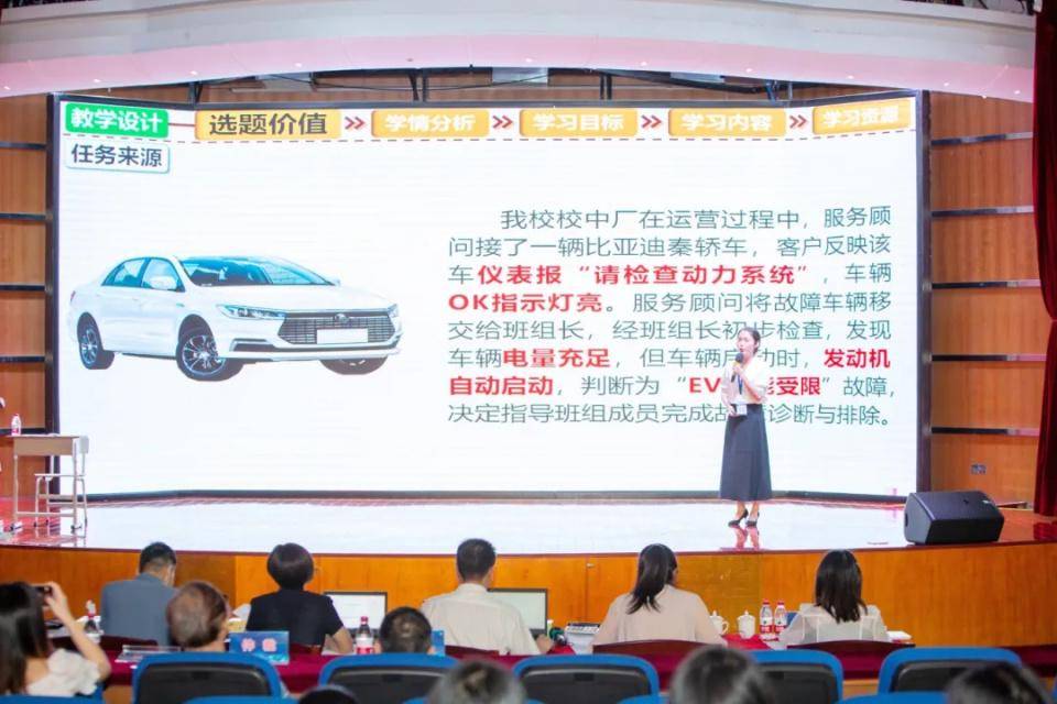决赛中,我校张晓清老师和李颖老师表现突出,现场说课环节展现了宝山技校教师在工学一体化教学中的深厚功底和不断创新突破的精神。张晓清老师的《比亚迪秦仪表报“请检查动力系统”故障诊断与排除》课程展示以及李颖老师的《气动换向阀不能换向故障诊断与排除》课程展示,既全面展现了我校教师优异的教学能力、扎实的专业水准,更体现了我校教师求知、探索、精益求精的向上精神。