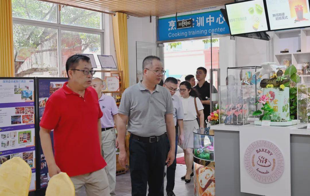 我校邓志久校长带领与会人员参观了我校的校园环境及各专业实训场所。参观过程中,邓志久校长向大家介绍了我校的办学特色。