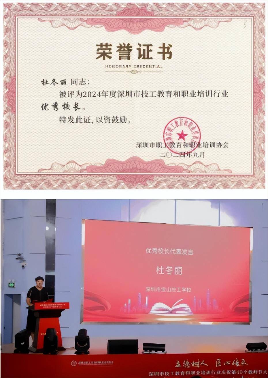 大会上,深圳市宝山技工学校荣获“先进办学单位”称号。学校邓志久校长代表学校上台领奖。