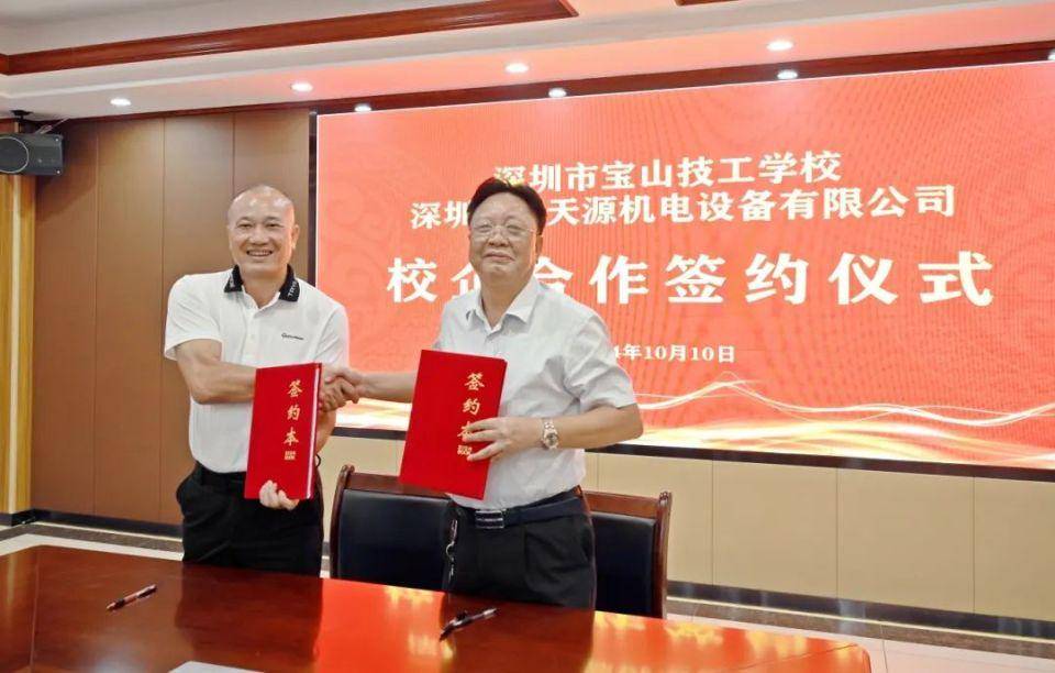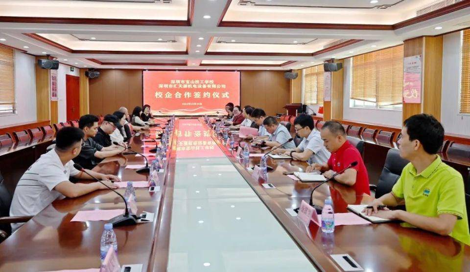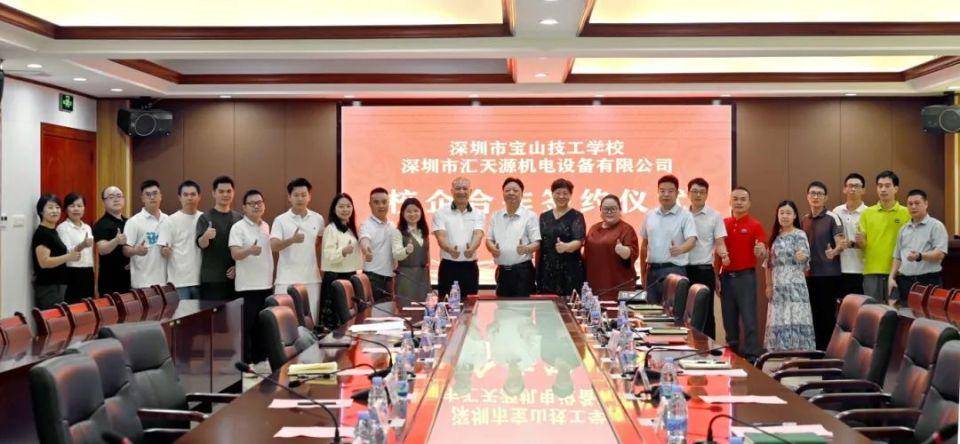 为全面深化产教融合,加强校企合作,精准对接行业人才需求,为社会培养更多的技能型人才,10月10日,深圳市宝山技工学校与深圳市汇天源机电设备有限公司举行校企合作签约仪式。本次签约仪式在学校综合楼四楼会议室举行,学校朱文汉副校长等学校领导、校企办等相关系部负责人、汇天源机电设备董事长李炳华携管理团队出席本次签约仪式。