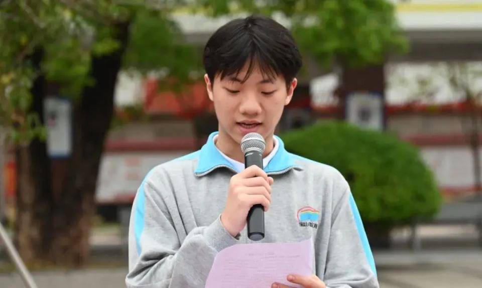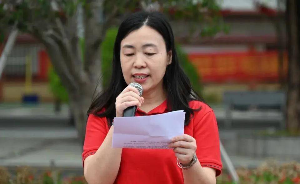 英姿飒爽的国旗护卫队迈着整齐划一、铿锵有力的步伐,护送五星红旗走向升旗台。庄严的国歌声响起,全体师生肃立致敬,面向国旗行注目礼。
