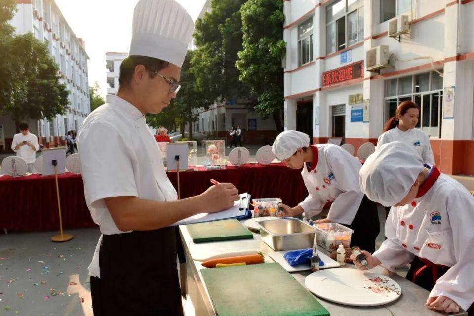4月11月,学校举行第十届技能文化节“徐记海鲜杯”系列竞赛之花样盘饰竞赛,来自烹饪系各班的19 名参赛选手参与角逐。学校邓志久校长等学校领导,企业代表徐记海鲜华南地区李浩招聘经理及烹饪系的老师、同学们观摩了比赛。