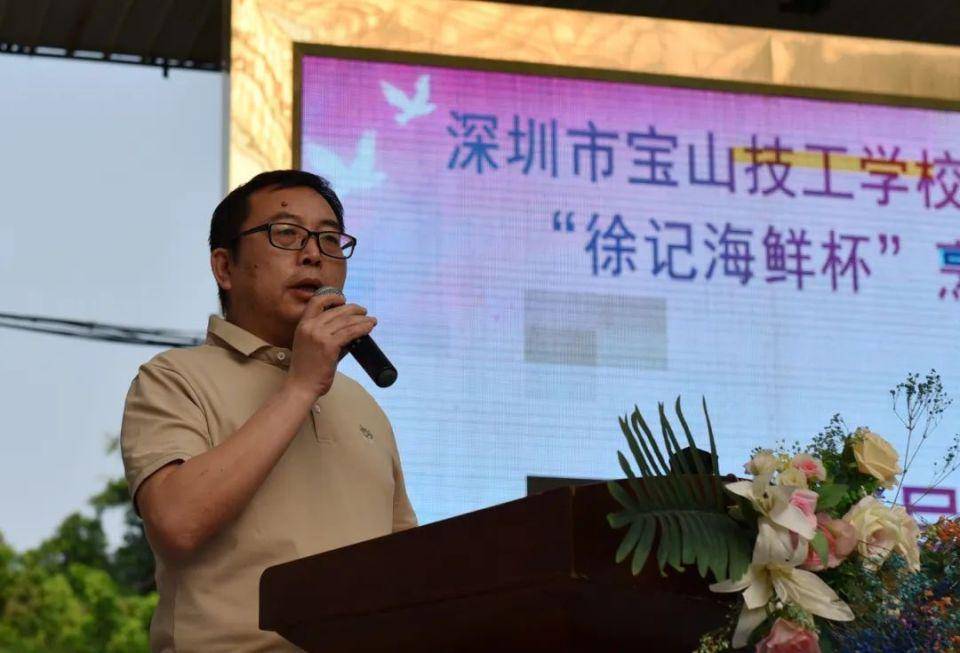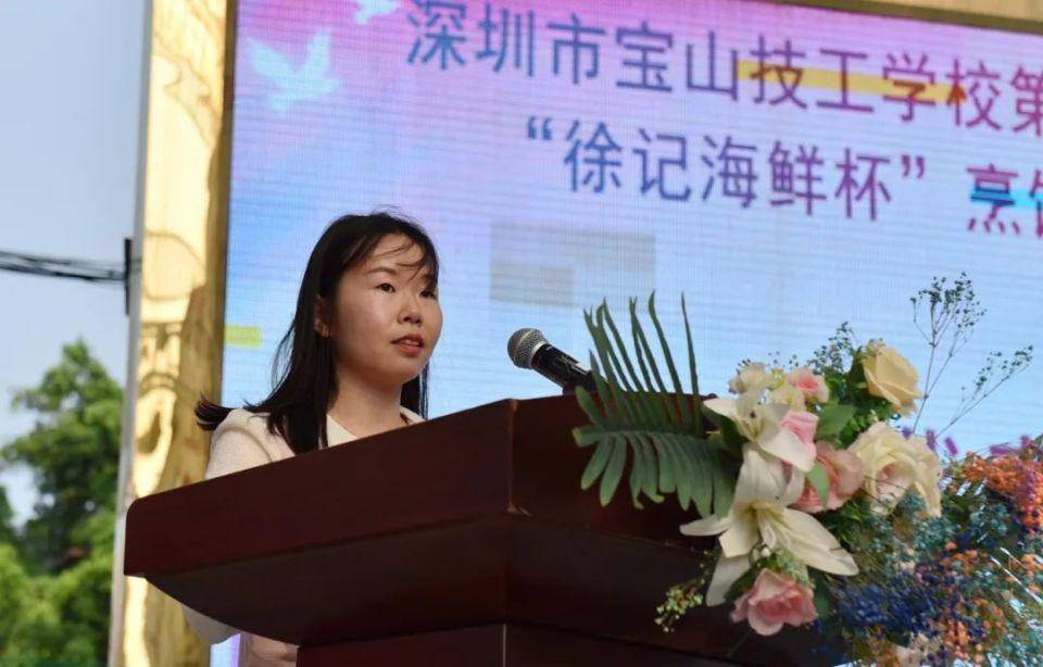 徐记海鲜华南地区招聘经理李浩发言。李浩总经理向宝山技校第十届技能文化节的开幕表示了热烈的祝贺,同时表示校企双方将通过深度合作,推进产学研紧密结合,形成校企协同发展的新型产教融合平台,实现优势互补、资源共享、互惠双赢、共同发展。