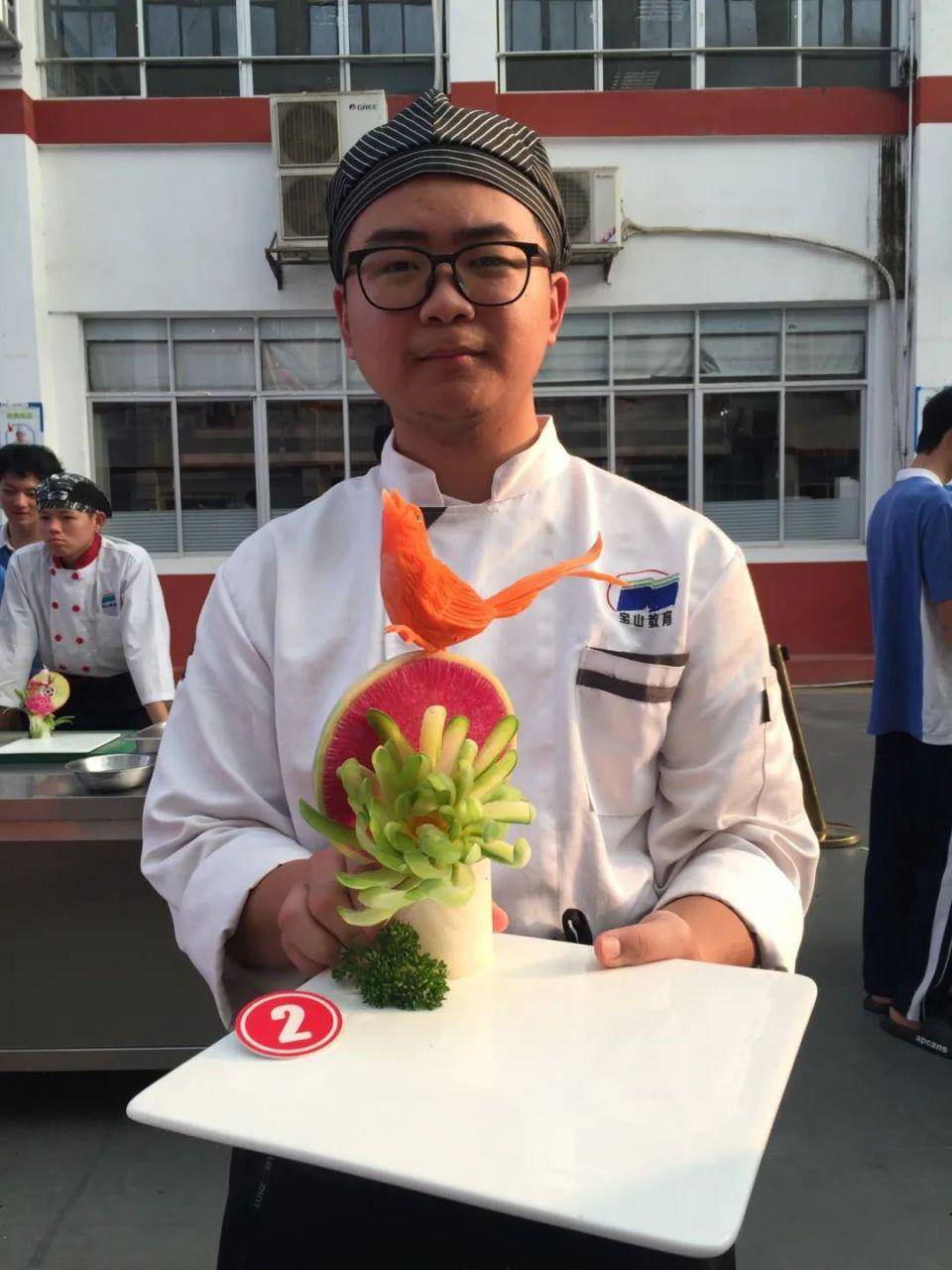 本次花样盘饰竞赛,是对参赛选手们的一场实战练兵,进一步提升了烹饪系学子的盘饰技能和创新能力,更展示了宝山技校烹饪学子的风采。