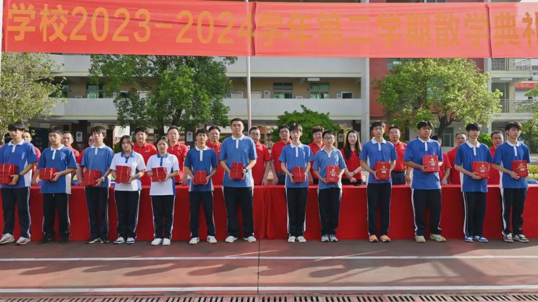 典礼上,邓志久校长总结了过去一学期取得的优异成绩,向辛勤付出的老师们表示感谢,向取得优异成绩的同学们表示祝贺。邓校长向同学们说道,暑假是放松身心、拓宽视野的宝贵时光,希望大家能够充分利用这段时间,合理规划,让每一天都充满意义。因此,他向同学们建议,首先,安全第一,假期中需要时刻保持安全意识,只有在交通、用电、预防溺水和防止诈骗等方面的安全,才能更好地享受假期。其次,劳逸结合,合理安排学习时间,巩固和拓展知识,适当进行体育锻炼,保持良好的身体状态。最后,坚持学习,即使在假期,也应该保持良好的学习习惯,培养我们终身学习的能力,利用假期时间,阅读书籍、拓展自己的知识面。祝愿同学们度过一个安全、快乐、充实的暑假。