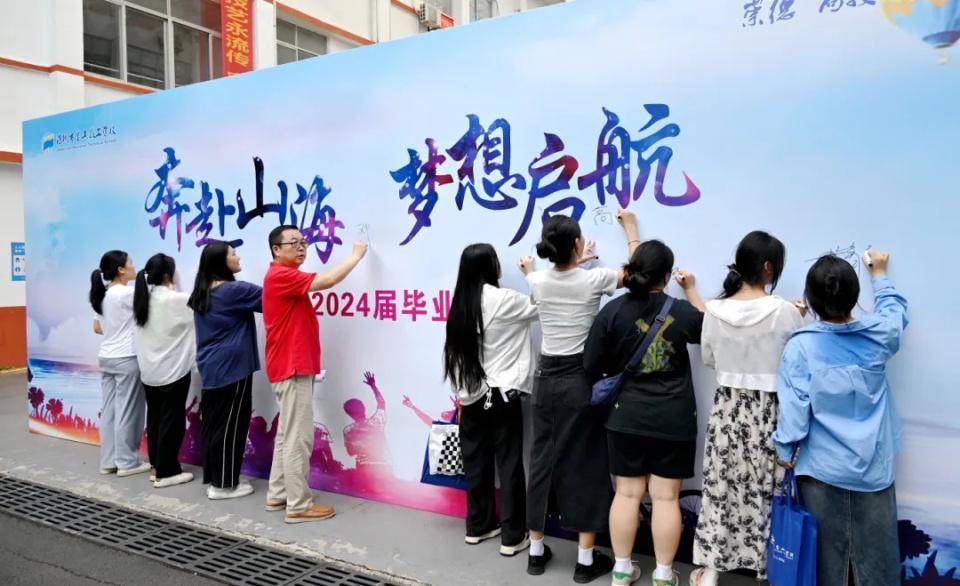 在签名墙前,毕业生们纷纷在上面写下自己的名字,仿佛是在为这段青春岁月刻下永恒的印记。有的毕业生与好友紧紧相拥,留下青春的拥抱;有的则与恩师合影留念,表达对老师的感激之情。这些照片将成为他们未来回忆中最珍贵的片段之一。