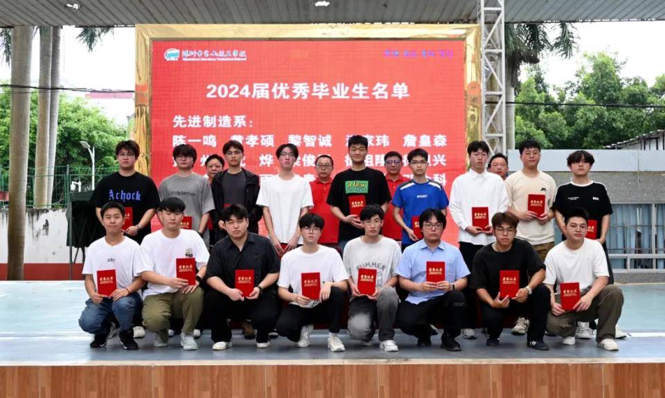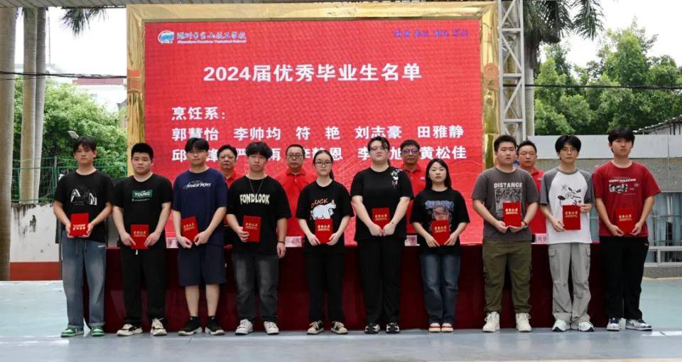 优秀毕业生表彰环节将典礼推向了一个小高潮。党支部张晋平书记宣读《关于表彰2024届优秀毕业生的决定》。76名优秀毕业生,他们或在学业上名列前茅,或在技能竞赛中摘金夺银,或在品德修养上堪称楷模。他们用自己的努力和汗水,为宝山技校争得了荣誉,也为全校学生树立了榜样。校领导们亲自为他们颁发证书,这一刻,荣誉与自豪交织在一起,成为了他们青春记忆中最闪耀的篇章。