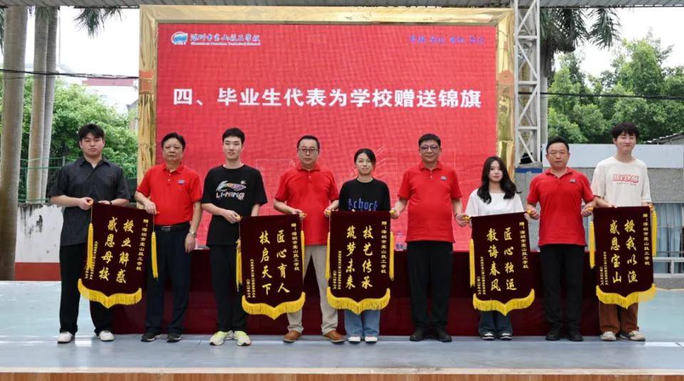 在温馨感人的氛围中,毕业生代表向学校赠送了锦旗。这些锦旗凝聚了毕业生们对母校的深深感激之情。校领导们接过锦旗,脸上洋溢着欣慰与自豪的笑容。他们知道,这面锦旗不仅是对过去工作的肯定,更是对未来发展的期许。