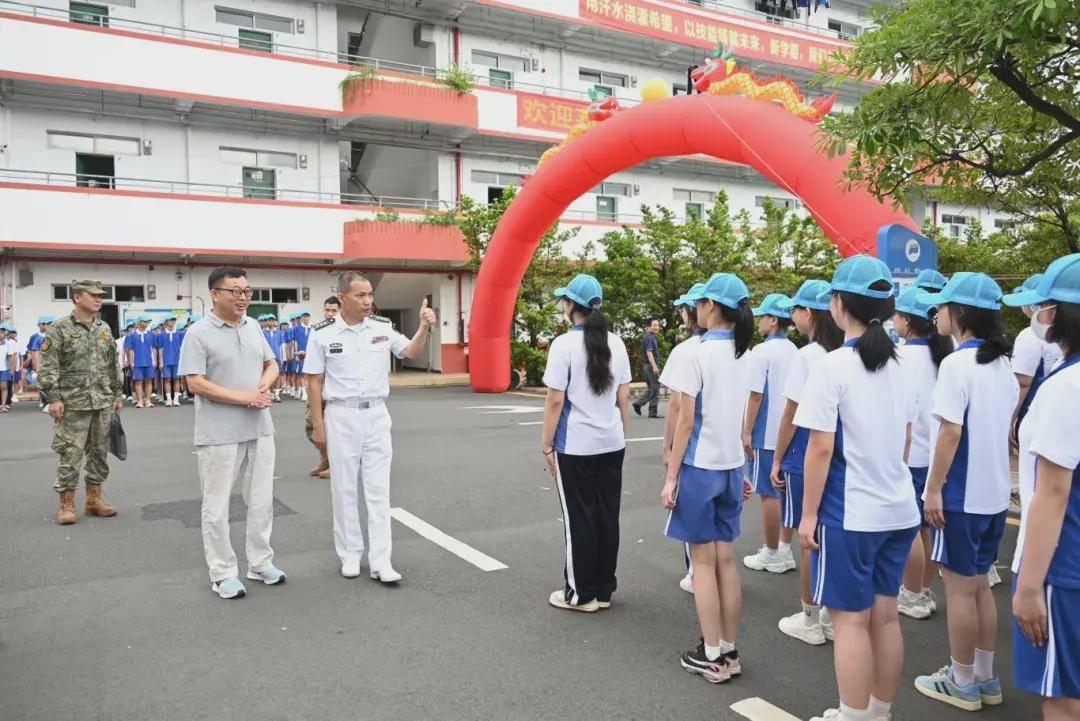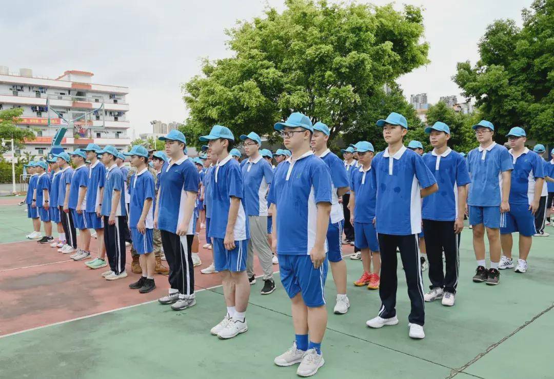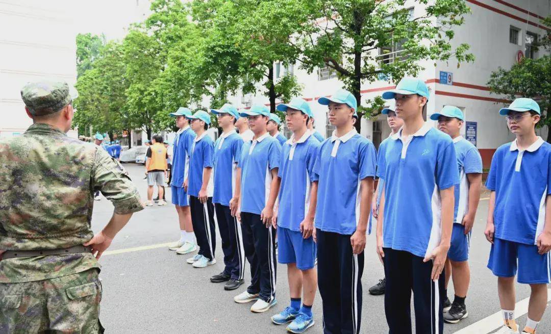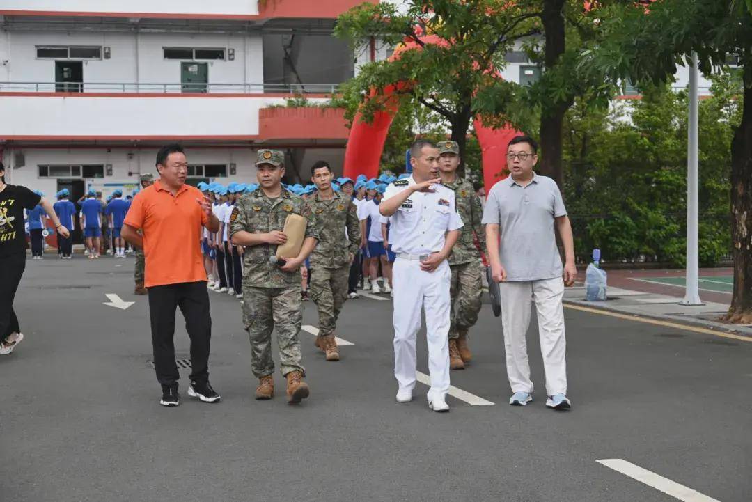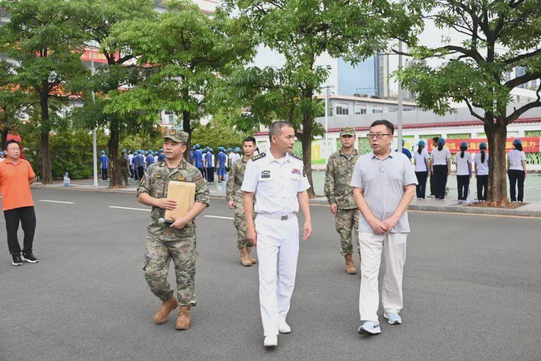 无论晨曦还是暮色,风雨还是高阳,在操场上一片片可爱的蓝色帽子中,领导与班主任们时刻陪伴在学生身边,时刻关注每位学生的身体状况与训练状态,为军训的顺利进行恪尽职守、保驾护航,用爱呵护每一个学生。8月20日下午,坪山区委常委、区人民武装部部长夏遵初亲临我校,看望慰问参训学生,指导学校军训。