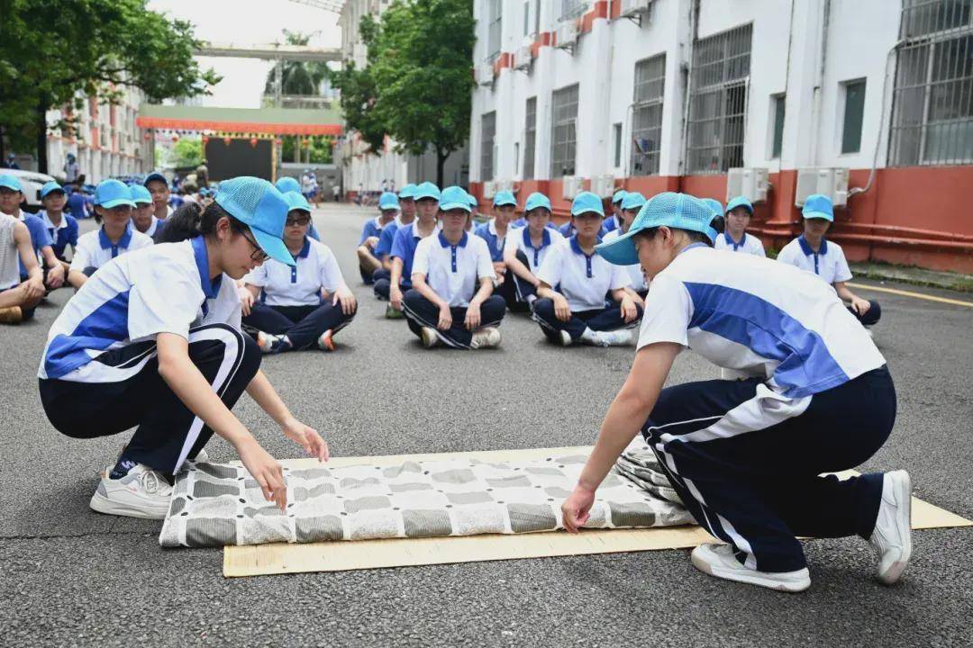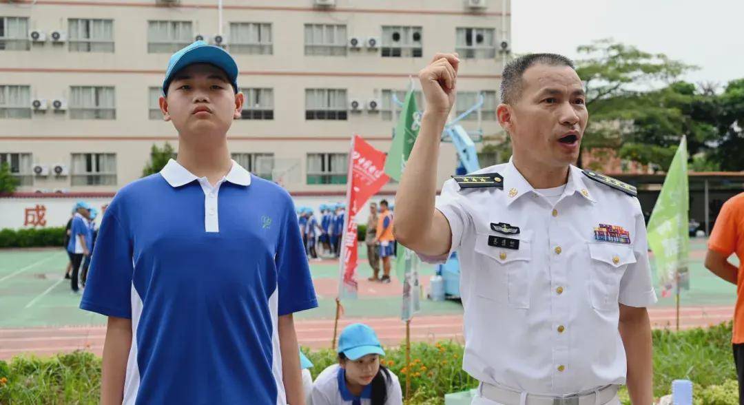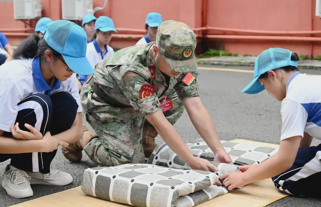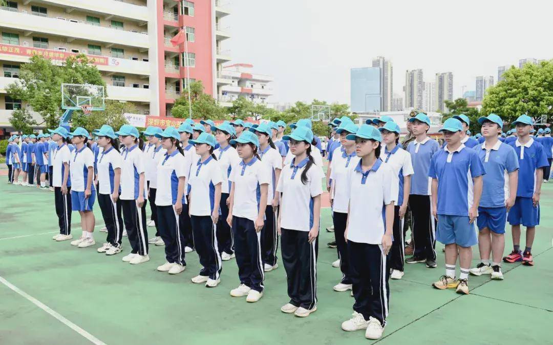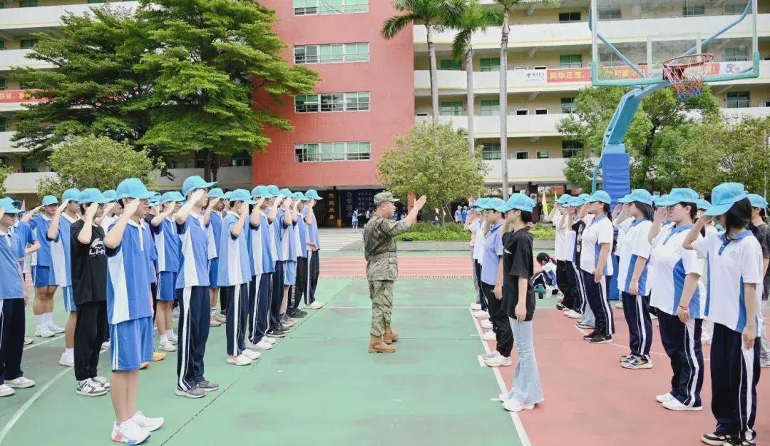 无论晨曦还是暮色,风雨还是高阳,在操场上一片片可爱的蓝色帽子中,领导与班主任们时刻陪伴在学生身边,时刻关注每位学生的身体状况与训练状态,为军训的顺利进行恪尽职守、保驾护航,用爱呵护每一个学生。8月20日下午,坪山区委常委、区人民武装部部长夏遵初亲临我校,看望慰问参训学生,指导学校军训。