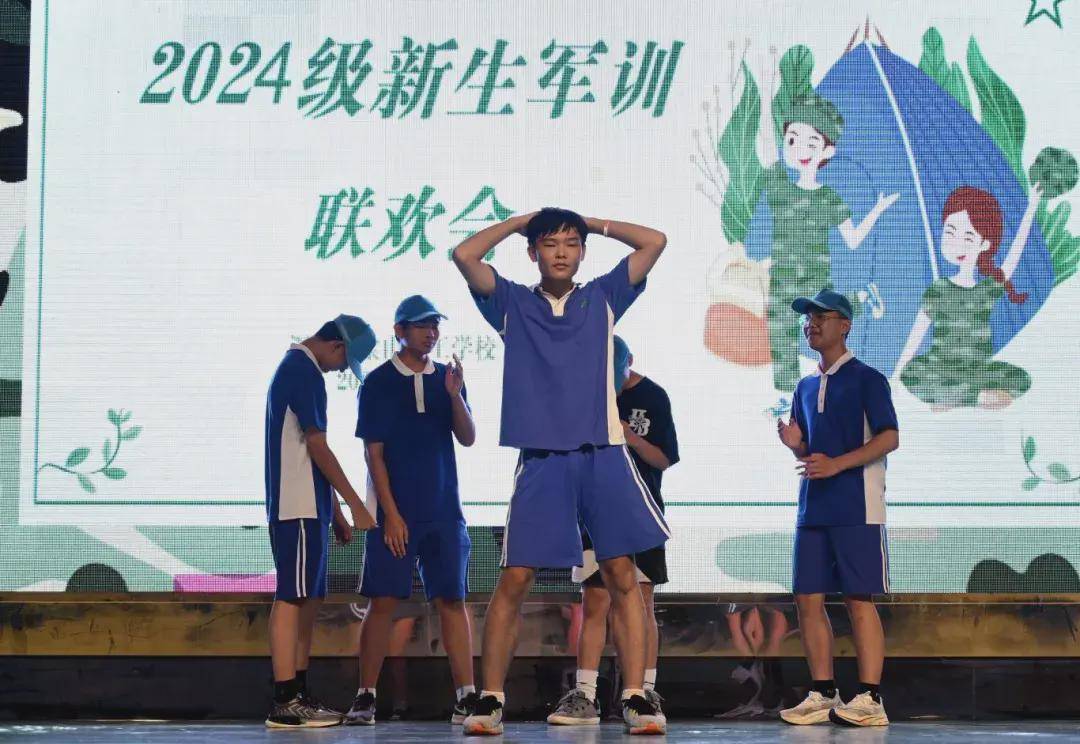 晚上,同学们以饱满的热情为大家带来精彩纷呈的演出,唱歌、跳舞不仅展现出同学们的多才多艺,更彰显了他们在军训中锤炼出的自信与坚毅。