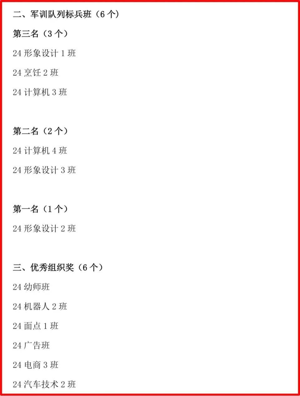 为向全体学生树立榜样,学校表彰了在训练过程中表现突出的个人和班级,希望同学们不骄不躁,再接再厉,实现自己的人生目标。