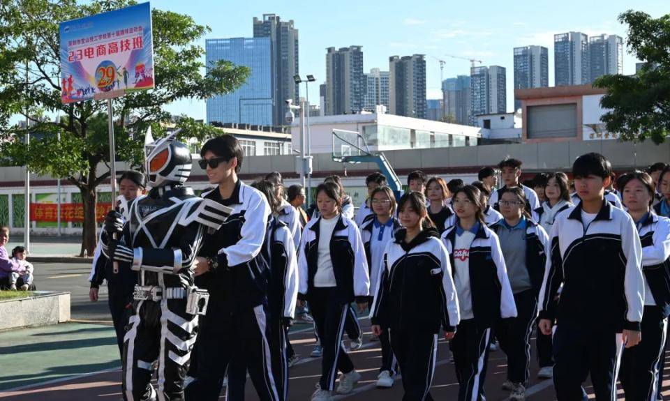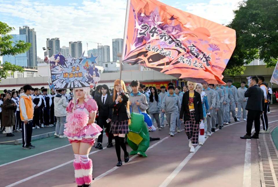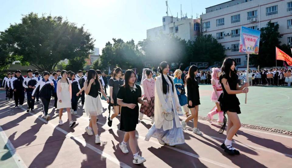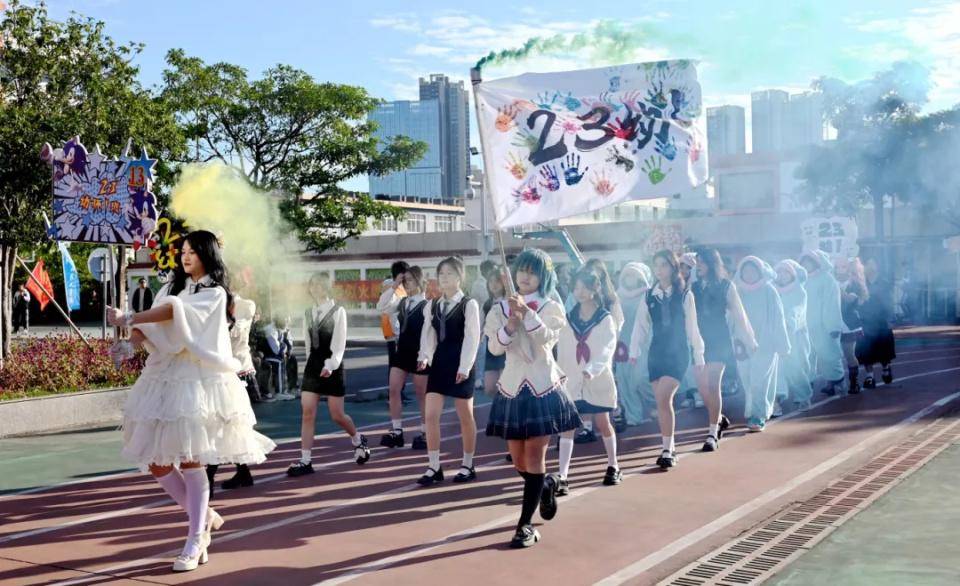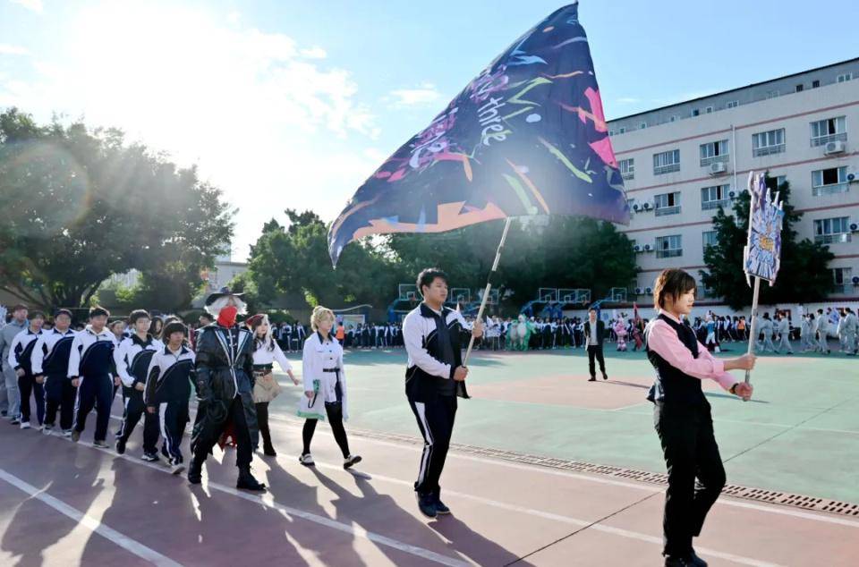 全校学生以班级为单位,各班方队带着本专业的特色,在开幕式解说员的解说下,依次入场。