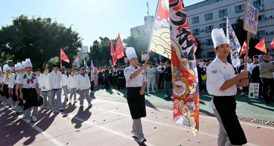艺术设计系带来活力四射的啦啦操《舞动青春、跃动年华》、先进制造系武术操《精忠报国》、商贸信息系篮球操《动感篮球》以及烹饪系搏击操《阳光少年、青春搏击》为参加比赛的师生加油助威。