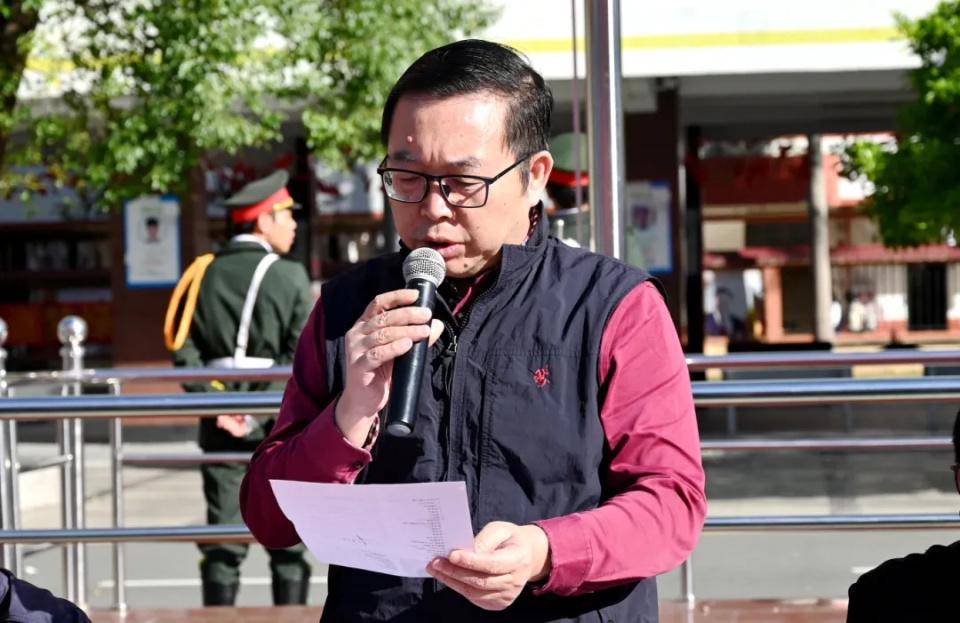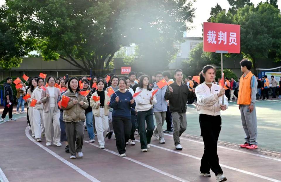 总裁判长黄德祥副校长讲话。黄德祥副校长表示,全体裁判员将全心全意地为本次运动会做好裁判工作,保证做到公平、公正、严肃、认真、准确、谨慎。希望全体学生以饱满的激情,昂扬的斗志,勇于拼搏进取的信念,团结向上的精神投入到本届运动会中去。